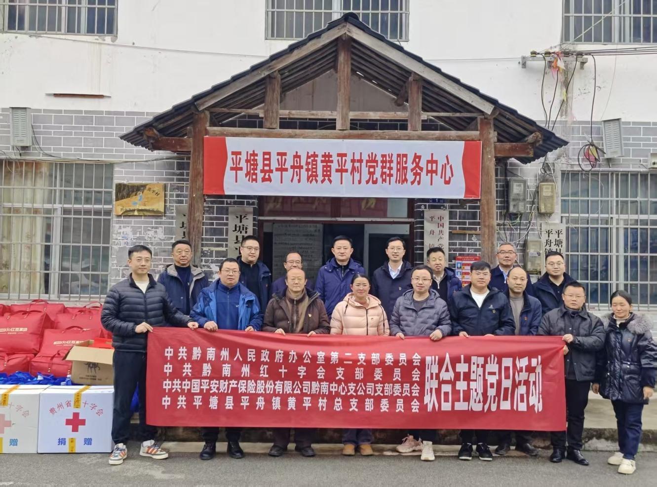 为切实加强基层党组织建设,充分发挥金融保险行业党建引领,助力乡村振兴的作用。1月29日,黔南州人民政府办公室第二支部与平安产险贵州分公司黔南中心支公司党支部到平舟镇黄平村开展党建共建活动。黔南州委常委、常务副州长丁毅,平安产险贵州分公司副总经理胡龑、平安产险黔南中心支公司总经理张永攀及项目相关人员出席参加此次活动。