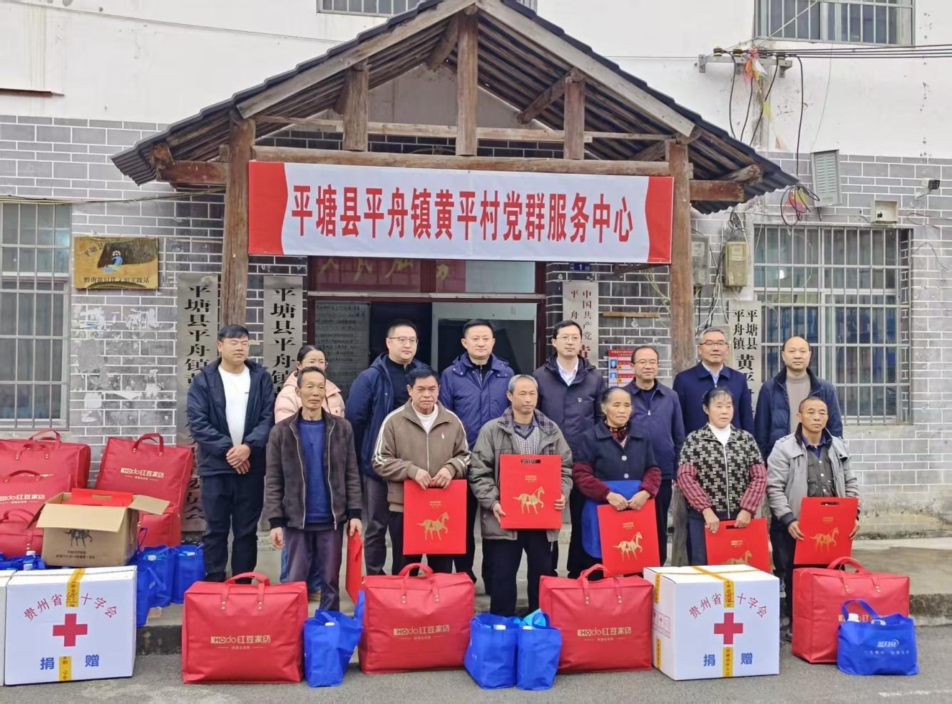 活动中,黔南州政府常务副州长丁毅与平安产险贵州分公司副总经理胡龑一行走访慰问了黄平村困难党员和群众,了解当地的生产生活状况、家庭困难及实际需求。同时,平安产险黔南中心支公司总经理张永攀代表平安产险黔南中支向黄平村捐赠了一批生活物资,以暖心举措传递企业温度,为村民送上祝福与关怀。